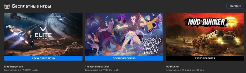 В сервисе Epic Games Store стартовала бесплатная раздача «масштабной многопользовательской космической эпопеи» Elite Dangerous и проекта The World Next Door, в котором сочетаются элементы визуальной новеллы и «молниеносные битвы-головоломки». Обе игры доступны бесплатно до 26 ноября, 19:00 по московскому времени.