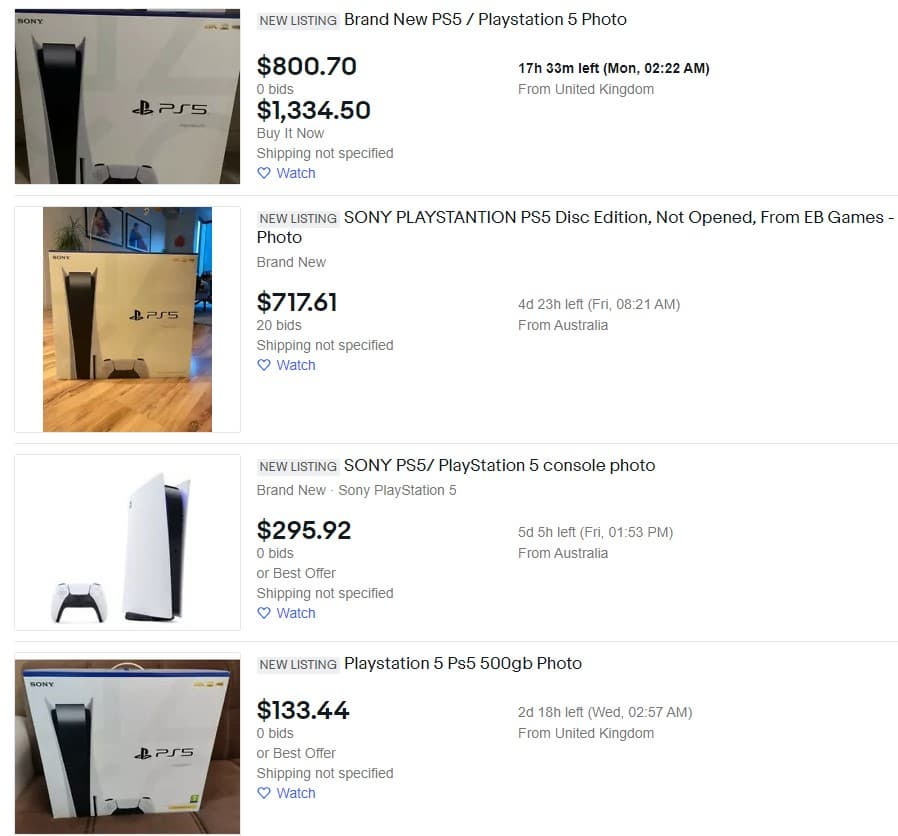 На аукционах eBay разных стран появилось немало объявлений с предложением приобрести фотографию новой консоли Sony. Продавцы надеются, что пользователи подумают, что покупают PS5.