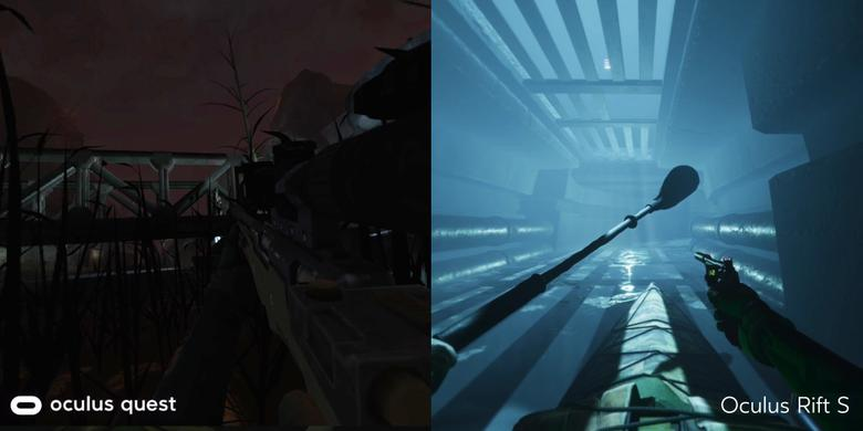 Так как игра — эксклюзив Oculus и выпущена одновременно на Rift и Quest, стоит упомянуть пропасть графического исполнения между двумя платформами. Rift-версия обладает хорошим уровнем графики. Вода плещется и реагирует на каждое ваше прикосновение, создавая муары и правильные рассечения поверхности. Оружие детализировано, освещение и эффекты приятные. Каждый уровень хоть и имеет архитектуру «советско-армейской разрухи», старается выделиться за счет цветовой гаммы, загрязненности воды, наличием или полным отсутствием источников освещения.