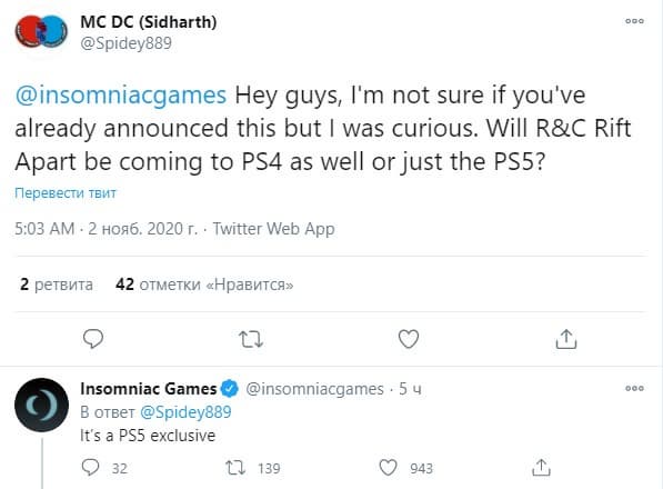 После последнего комментария главы PlayStation Джима Райана игроки уточини у Insomniac Games - выйдет ли Ratchet & Clank: Rift Apart также на PlayStation 4? Студия подтвердила эксклюзивность для PS5: