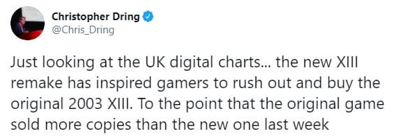 Ремейк шутера XIII, выпущенный 10 ноября, стал одним из самых больших разочарований года из-за технического состояния. Ярким показателем этого является тот факт, что на прошлой неделе на британском рынке было продано больше копий оригинала 2003 года в цифре.