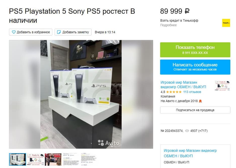 Тем временем торговые площадки, вроде Авито, заполняют предложения купить PlayStation 5 по ценам, как минимум вдвое превышающим магазинные.