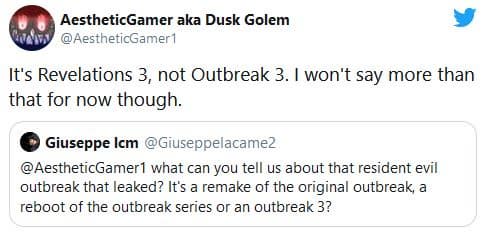 В начале 2000-х Capcom выпускала две части Resident Evil Outbreak на PlayStation 2. Поэтому некоторые пользователи решили, что компания намерена возродить это ответвление. Однако информатор Dusk Golem, ранее сообщавший достоверные сведения о Resident Evil, заявил, что Outbreak – это кодовое название третьей части Resident Evil Revelations.