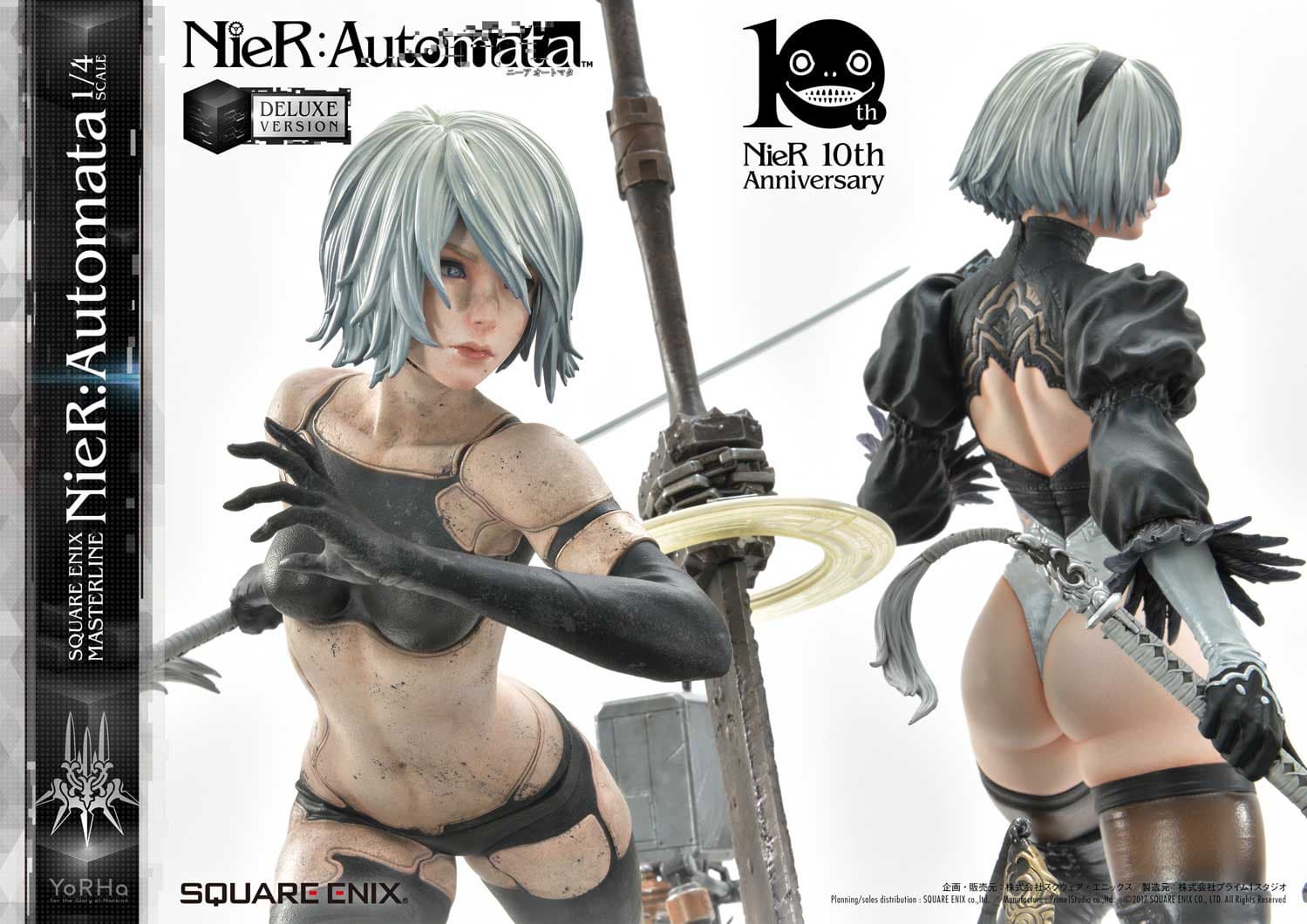 Компания Prime 1 Studio представила фигурку героев 2B, 9S и A2 из игры Nier: Automata высотой 63,2 сантиметра. Фигурка примечательна проработкой всех деталей и дополнительными элементами доступными в рамках Deluxe-издание. Каждая такая фигурка раскрашивается вручную.