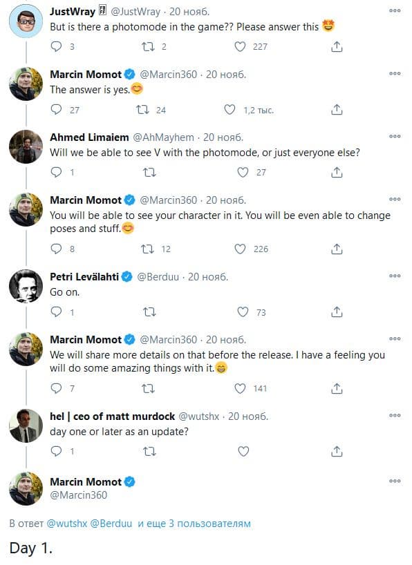 «Больше подробностей мы сообщим до релиза игры. Мне кажется, что вы будете вытворять в фото-режиме удивительные вещи», - отметил Момот и заявил, что фото-режим будет доступен в Cyberpunk 2077 в день релиза игры.