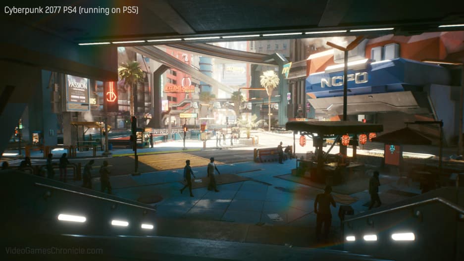 В сети доступны лишь обзоры Cyberpunk 2077 в версии для ПК, но редакция VGC опубликовала скриншоты со сравнением PS5-версии (обратная совместимость с PS4) с ПК-версией (GeForce RTX 2070, Intel Core i7-8086K @ 4,00 ГГц и 16 ГБ). Журналист упоминает частоту 60 кадров в секунду на PlayStation 5.