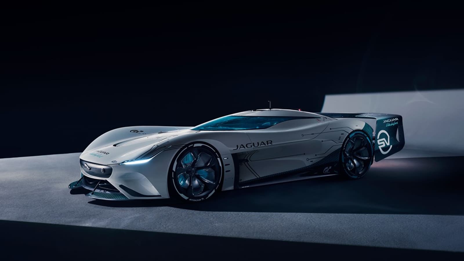 Jaguar Vision Gran Turismo SV – новая версия концептуального электрического гиперкара, разработанная специалистами компании. Это улучшенная версия машины, которая есть в Gran Turismo Sport – дизайнеры позаботились о её увеличении и обновлении задней части.