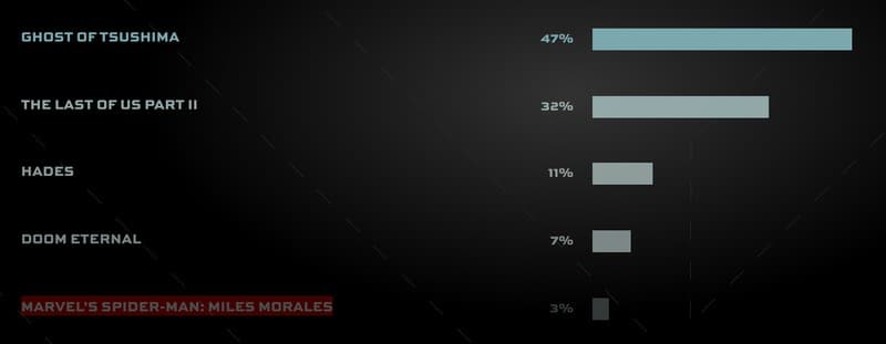 На сайте TGA 2020 (The Game Awards) завершилось голосование пользователей за игровые проекты, номинированные на Игру Года. Победителем ожесточенного противостояния стала игра Ghost of Tsushima. Игровой проект о нелегкой судьбе одинокого самурая превзошeл конкурентов в лице The Last of Us Part II, Hades, DOOM Eternal и Marvel's Spider-Man: Miles Morales.