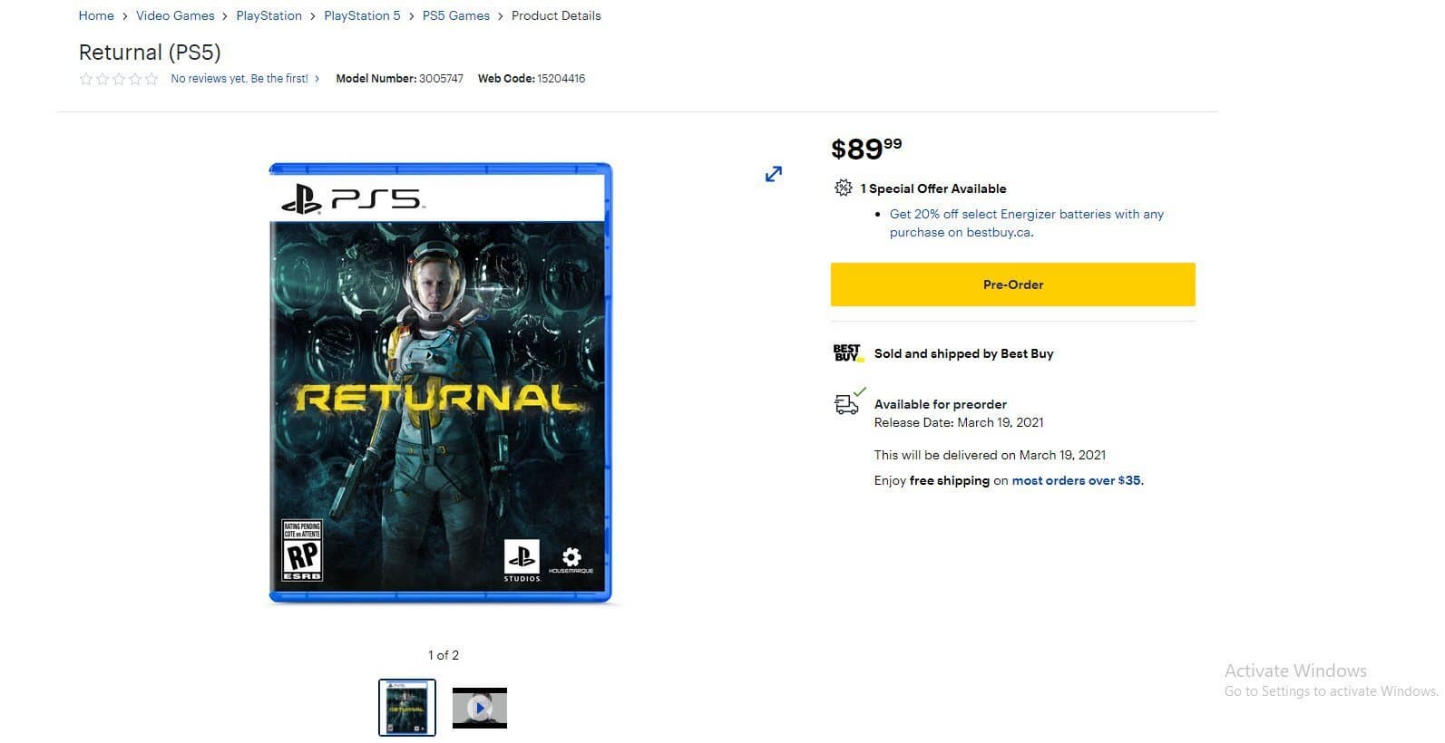 Многообещающий фантастический шутер Returnal, разрабатываемый финской студией Housemarque, выйдет 19 марта 2021 года исключительно на PlayStation 5. Во всяком случае, именно эта дата указана на канадской странице сети магазинов Best Buy.