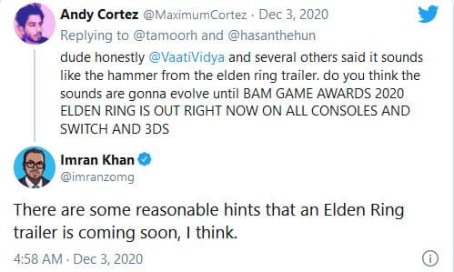Тем временем бывший главный редактор Game Informer Имран Хан, комментируя возможную демонстрацию нового трейлера Elden Ring в рамках The Game Awards, отметил, что ролик игры, вероятно, увидит свет в обозримом будущем.