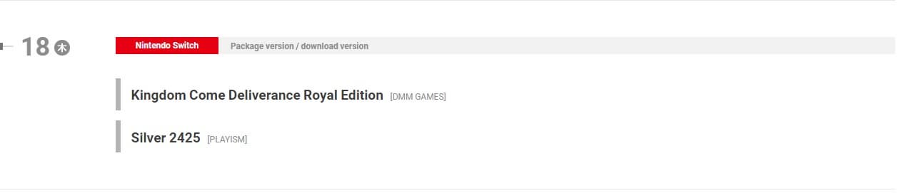 Если верить информации, появившейся на сайте японского отделения Nintendo, то проект Kingdom Come Deliverance появится на Switch 18 февраля этого года. Игра выйдет на Switch, как в цифровом формате, так и картриджах. Подробностей об издании для Switch пока не сообщается.