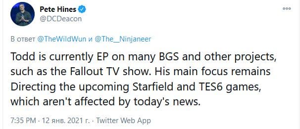 «Тодд является исполнительным продюсером многих игр от Bethesda Game Studious и других проектов вроде телесериала по Fallout. Тодд возглавляет разработчиков The Elder Scrolls VI и Starfield, и это его основная работа, на которую новости о проекте про Индиану Джона не влияют», - сказал Хайнс.