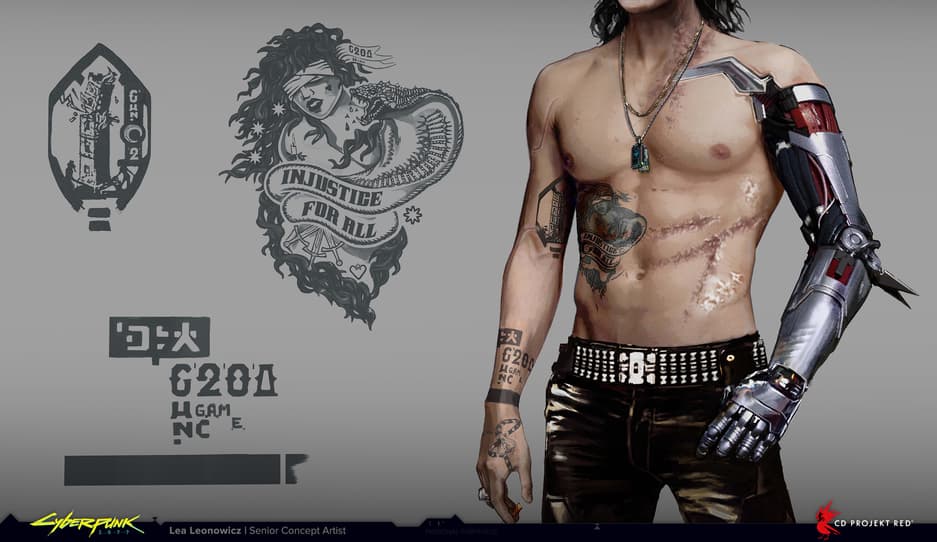 Старший художник концепт-артов и координатор из CD Projekt RED Леа Леонович опубликовала изображения Джонни Сильверхенда из Cyberpunk 2077. Речь идёт о ранних концепт-артах, когда Джонни ещё не был похож на актёра Киану Ривза. Зато на картинках он уже щеголяет механической рукой. Прилагаются шрамы и татуировки.