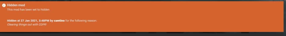 CD Projekt сделала недоступной на сайте NexusMods модификацию, позволяющую менять местами модели персонажей. Уж больно много свободы она давала игрокам, использовавших ее для того, чтобы превратить киборга Адама Смэшера и Джонни Сильверхенда в секс-кукол. Сейчас страница модификации скрыта за заглушкой, которая гласит: