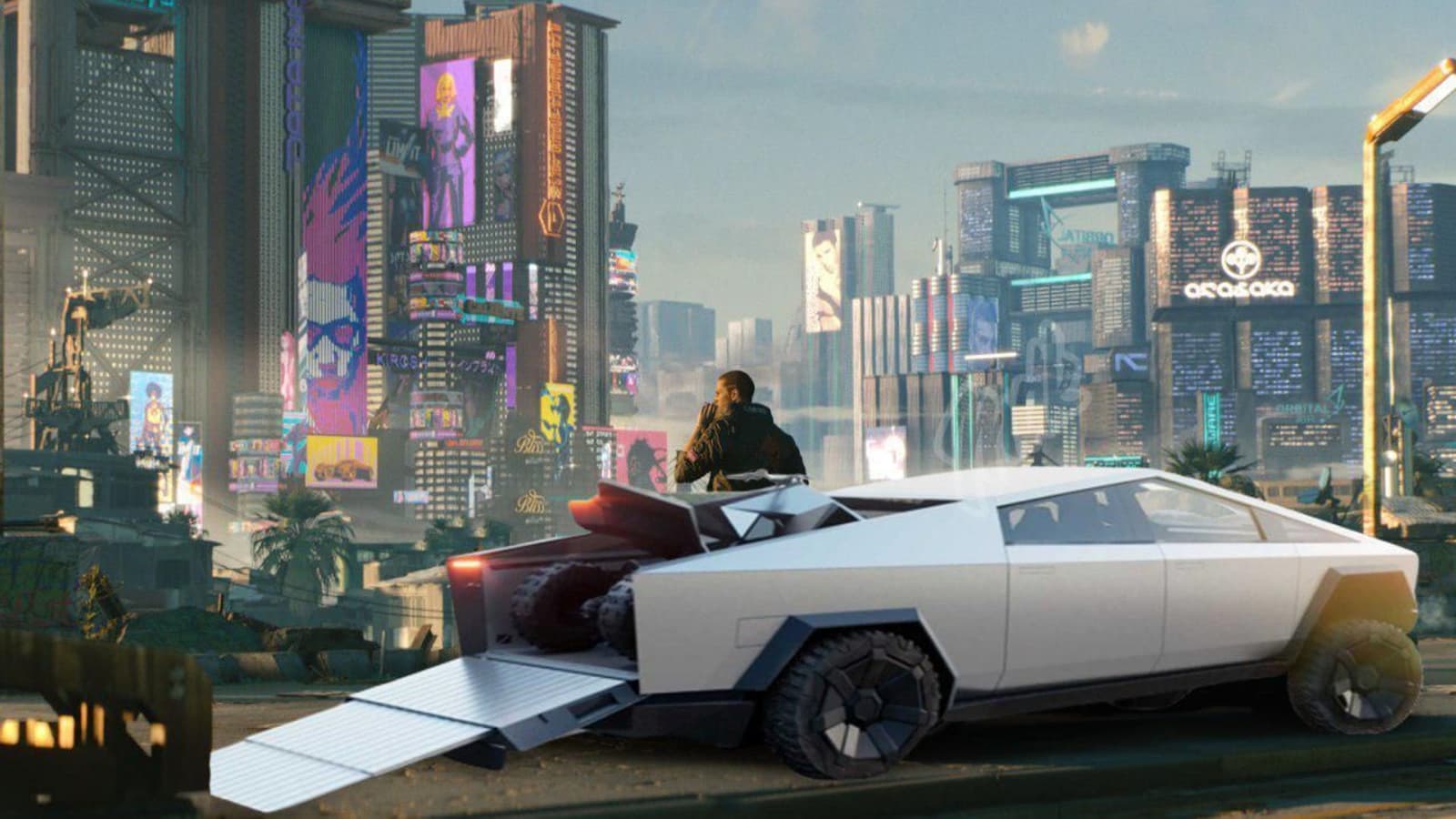 Помимо автомобиля Tesla, Cyberpunk 2077 также работает на ПК и вроде как начала нормально работать на консолях текущего и уходящего поколений после заплатки 1.1.