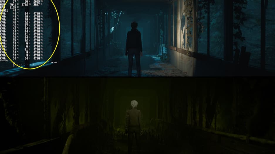 DSO Gaming проверило производительность в одной из сцен с двумя реальностями, в которой игра после обновление демонстрировала минимальную производительность в 41к/c и среднюю производительность в 58к/c. До обновление в этой же сцене минимальная производительность равнялась 70к/c, а средняя - 83к/c. В обоих случаях игру запускали в разрешении 1080р с высокими настройками без трассировки лучей и DLSS.