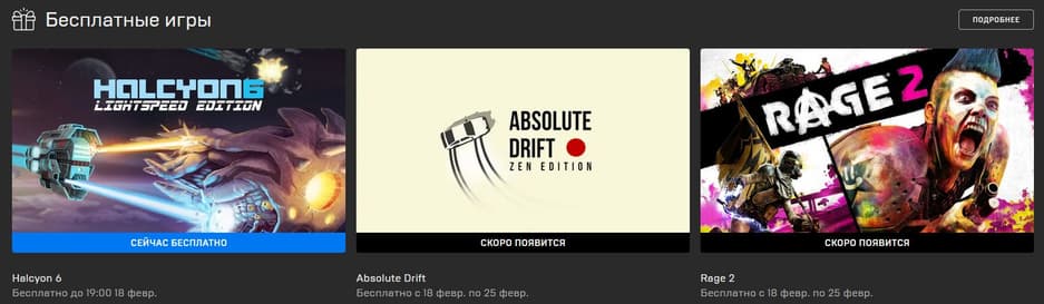 С 18 по 25 февраля в Epic Games Store пройдёт бесплатная раздача гоночной игры Absolute Drift и красочного приключенческого боевика в открытом мире Rage 2.