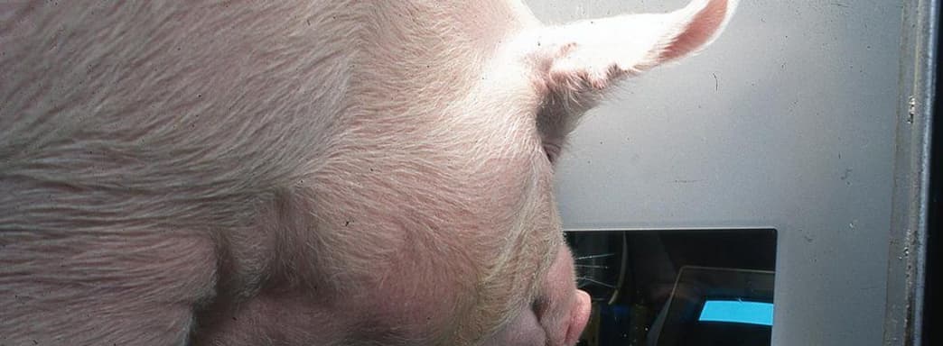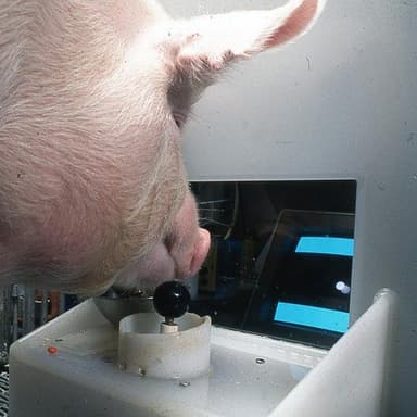 Свиньям, которых зовут Гамлет, Омлет, Эбеновое дерево и Слоновая кость, предлагали угощение за то, чтобы они направляли курсор на стену. Обучающий персонал объяснил BBC, что умение связывать движение джойстика с происходящим на экране «является настоящим подвигом» и «выдающимся достижением» - тем более, что это существа дальнозоркие, без рук и пальцев.