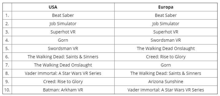 На PS VR продолжает лидировать Beat Saber, выходившая в ноябре 2018 года.