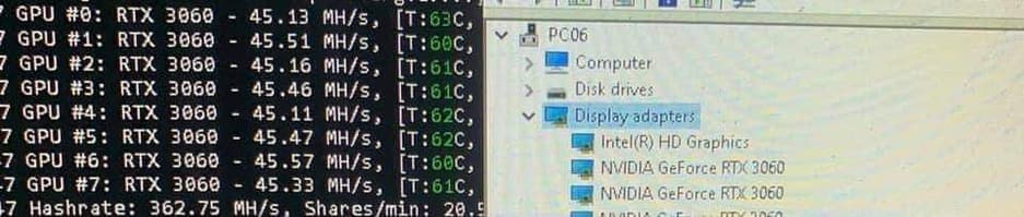 Судя по представленному выше изображению, видеокарта RTX 3060 обеспечивает производительность 40-45 МХ/с, что как раз соответствует показателям без встроенного ограничителя.