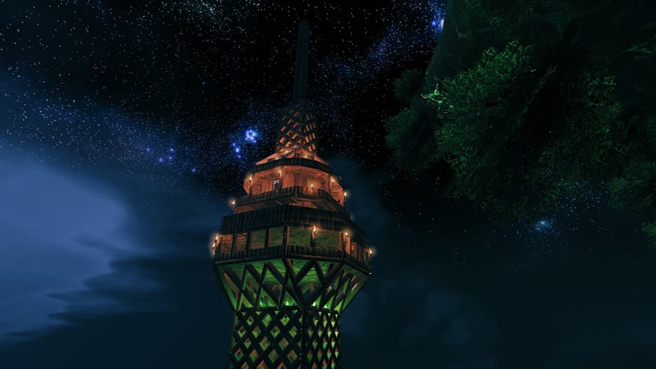 Игрок Sasafy воссоздал в Valheim деревянную копию Эйфелевой башни. По его словам, дизайн выполнен в масштабе 1: 1, а количество элементов значительно снизило частоту игры.