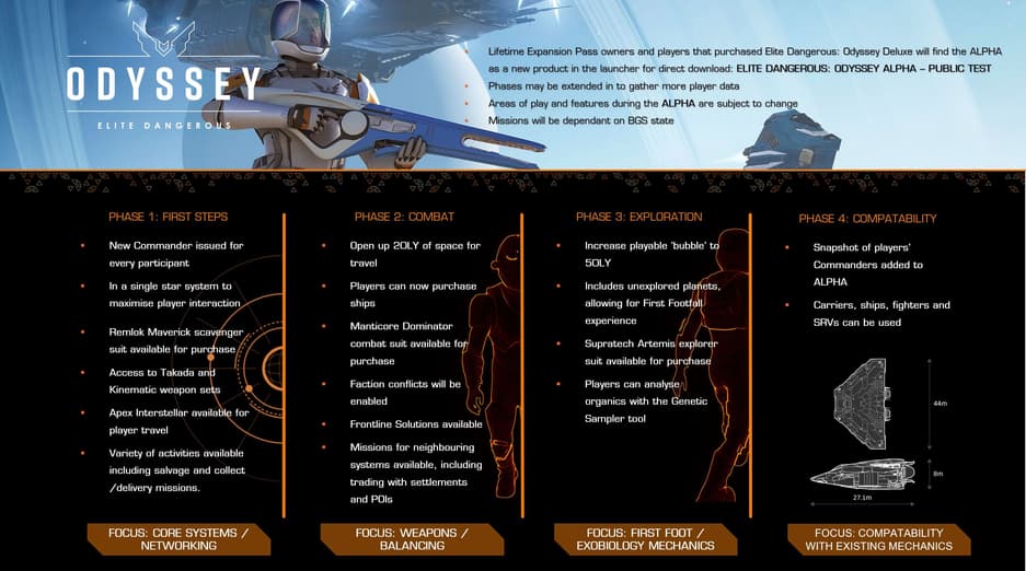 На втором этапе создателям сосредоточатся на балансе. Затем Odyssey получит экипировку Manticore Dominator и космические корабли (с их помощью вы сможете перемещаться на расстояние до 20 световых лет). Также будут разблокированы войны фракций и система миссий.