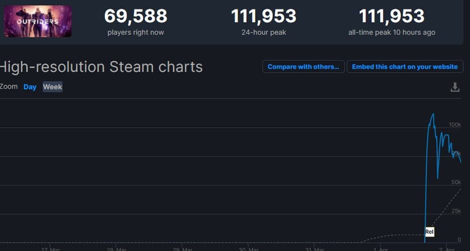 Вчера вечером состоялся релиз шутера Outriders от студии People Can Fly и Square Enix. На старте игра пользуется огромной популярностью.