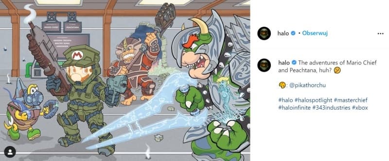 Один из намёков может быть указан в посте официального Instagram серии Halo, где разработчики опубликовали картинку одного из фанатов со совмещением двух франшиз Halo и Mario.