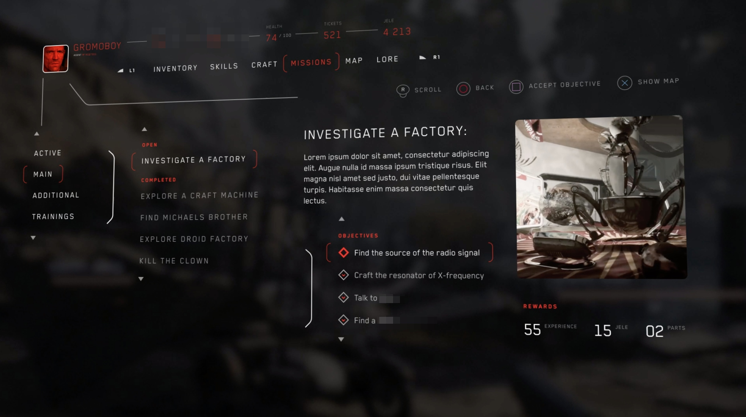 Также представлен образец интерфейса, который был использован при разработке ранней версии игры в 2019 году.