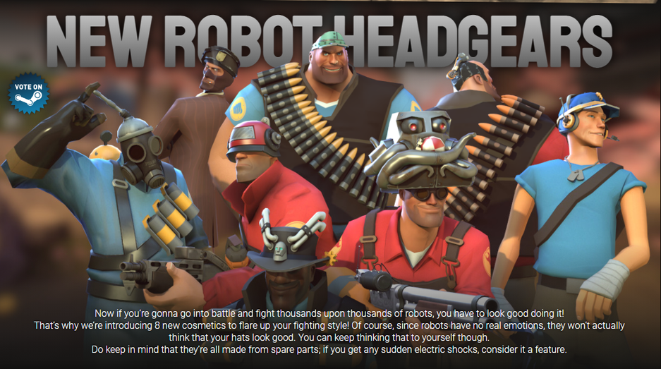 Не обошлось и без тематических предметов кастомизации. В игре появятся роботизированные шапки.