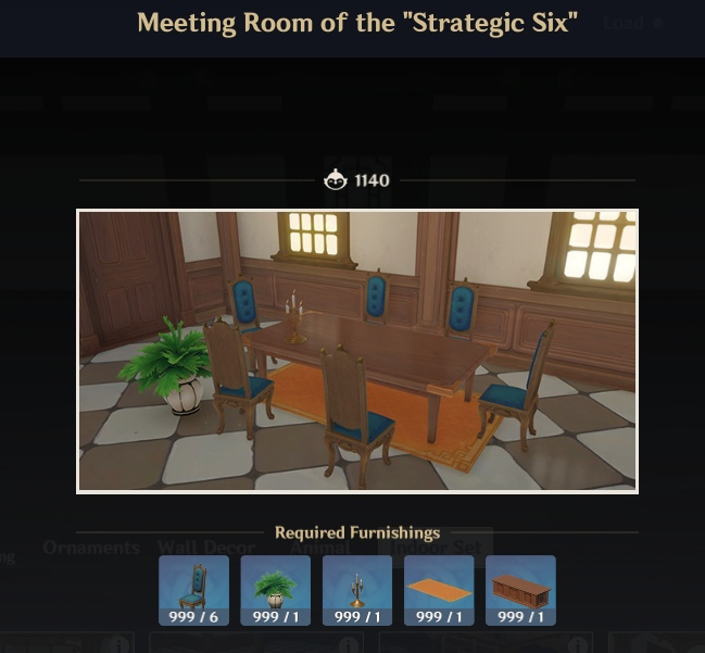 В игре появится крафт мебели. Материалы для строительства предстоит добывать в знакомых локациях Тейвата. Например, вырубая деревья можно добыть древесину. Также они появятся в продаже у коммивояжёра и в Realm Deрot (новый магазин). Для этого используется новая валюта «Realm Currency».