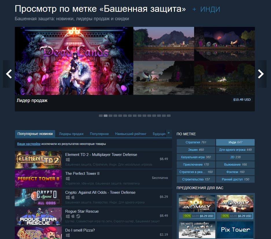 Valve представила дополнительные опции, например, через раздел «Новое и примечательное». Каждая из них – отдельная страница, на которой показаны набирающие популярность игры, бестселлеры, текущие предложения и т.д. Здесь также можно ограничить результаты поиска одним из тегов.
