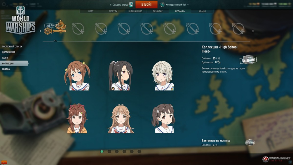 Собрав полную коллекцию девочек, игрок может получить в награду косметический предмет для своего корабля. Например, за сбор коллекции «Вахтенные на мостике» в награду выдают соответствующий флаг.