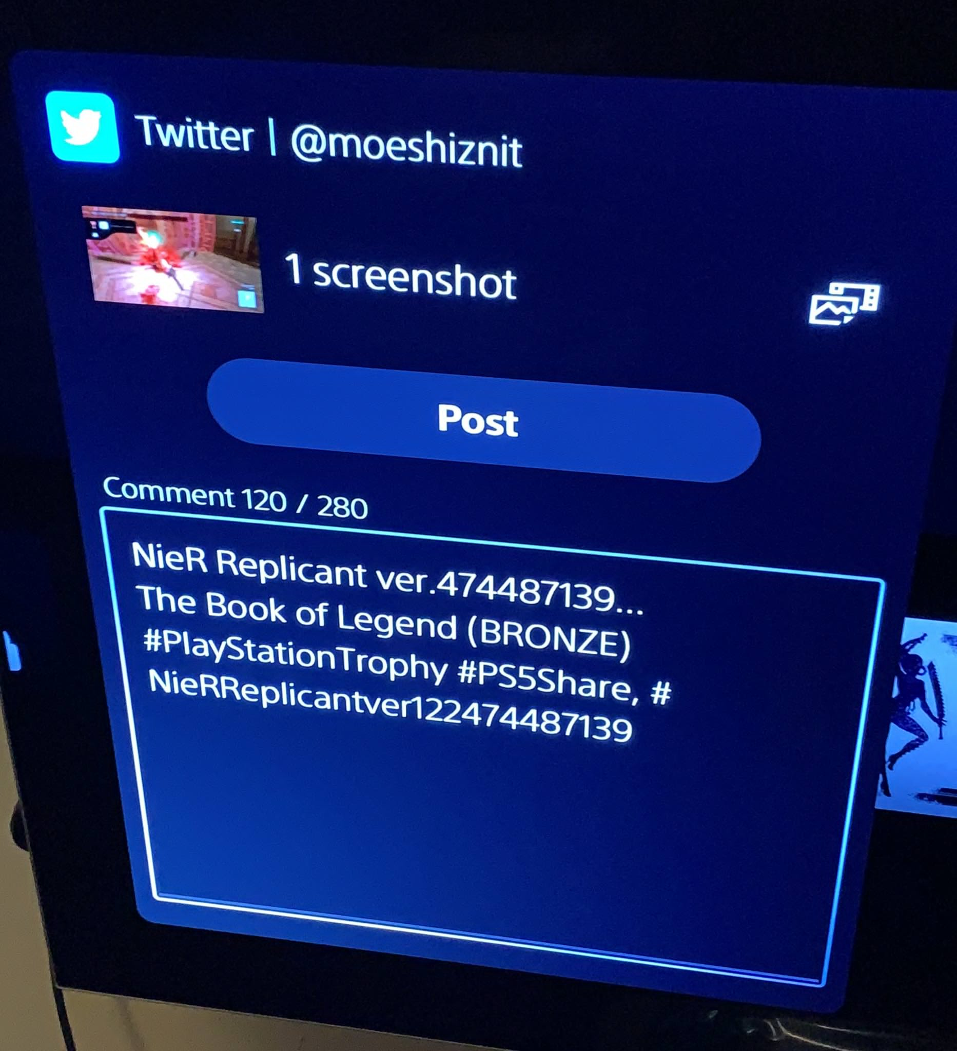 Обновлённая версия боевой ролевой игры Nier Replicant вышла несколько дней назад. Пользователь Twitter под ником Moe решил поделиться этой радостной новостью с другими. Однако, при попытке создать пост он столкнулся с обновлённым фильтром текста для консоли PS5.