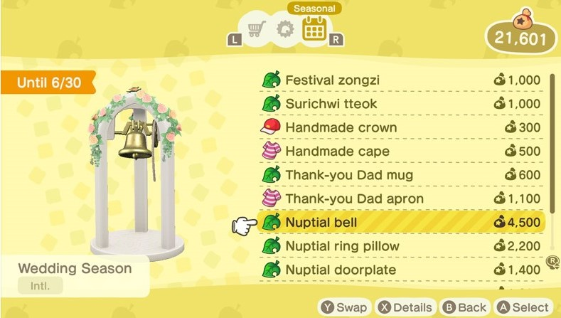 В рамках свадебного сезона в магазине Able Sisters появятся тематические свадебные предметы. Был представлен один из них. Это Tsunokakushi (Цунокакуши), традиционный головной убор, который надевают невесты в Японии на синтоистских свадебных церемониях.