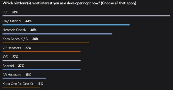 По результатам опроса GDC также стало известно, что PC — самая популярная платформа, у создателей игр, а лидером среди консолей стала PS5.