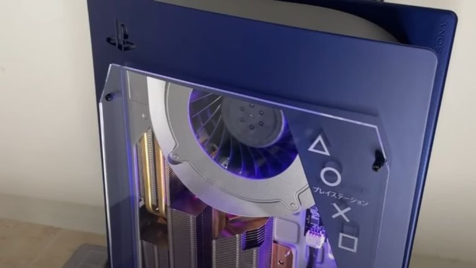 Игрок не только изменил цвет, но и обнажил компоненты устройства, которые видны сквозь прозрачное оргстекло. Такая PS5 больше похожа на ПК, так как помещена в специальный корпус, где используется подсветка.