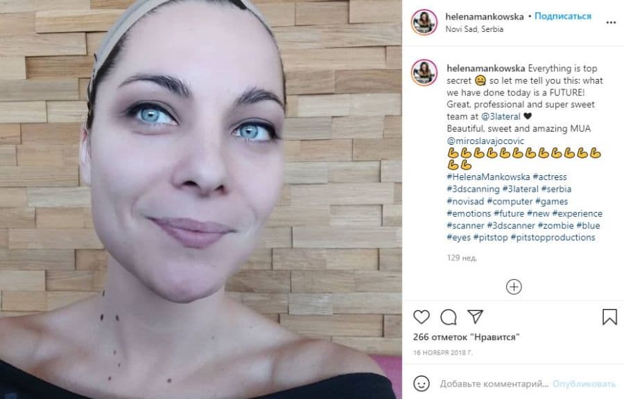Несложно заметить, что лицо вампирши явно вдохновлено другой актрисой. Это Хелена Манковска, которая была дублёром Миллы Йовович в первом фильме серии Resident Evil. Ссылка на её Instagram.