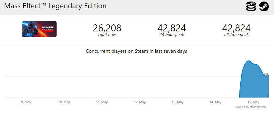 Вчера, 14 мая состоялся выход переиздания трилогии ролевых игр в научно-фантастическом сеттинге Mass Effect Legendary Edition. Спустя пару часов после выхода, игра установила исторический рекорд.