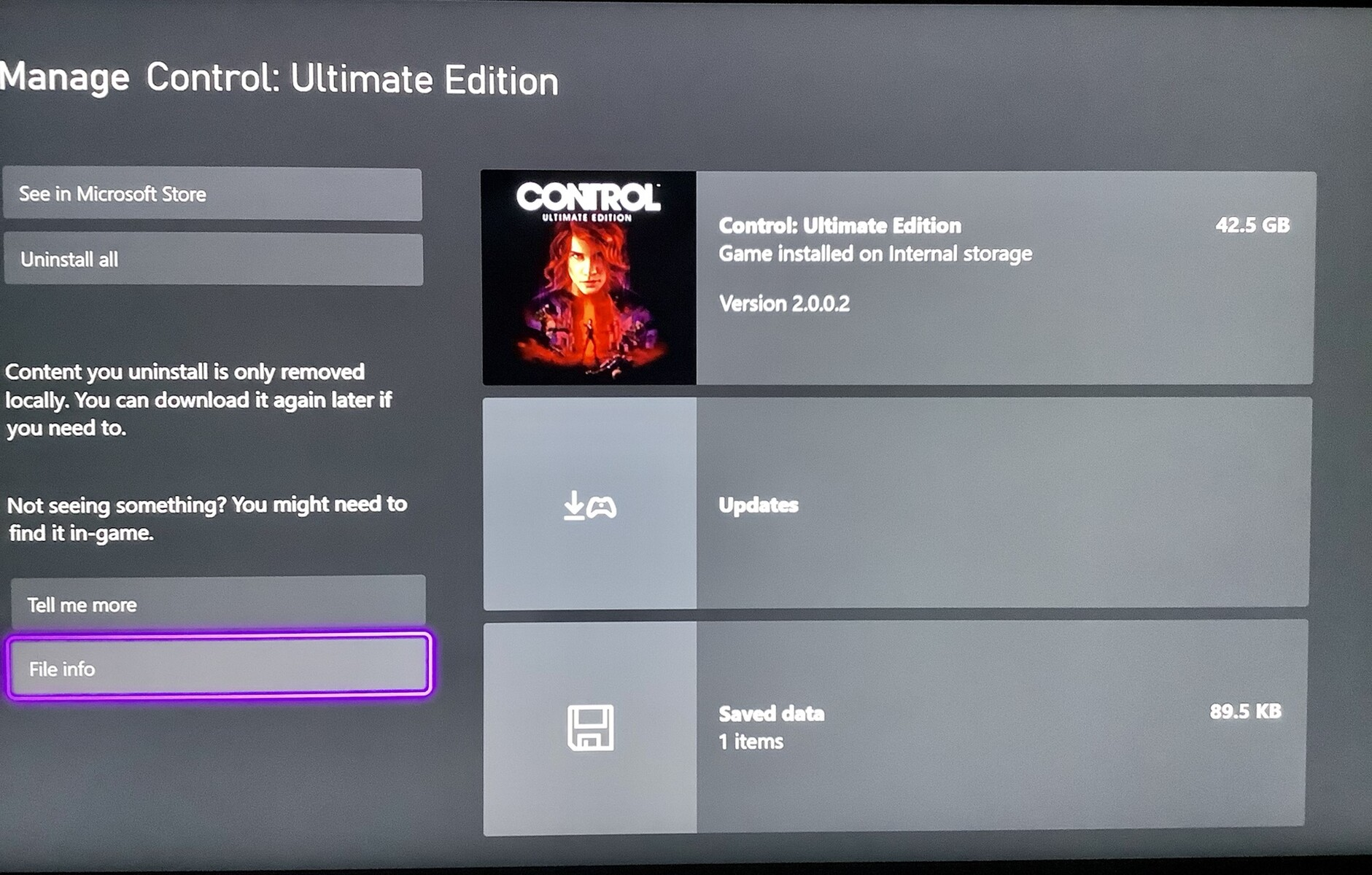 На портале Notebookcheck был приведён расчёт в процентах того пространства, которое занимают файлы Control Ultimate Edition. В теории, файлы должны занять 4,25% от 1000 ГБ на Series X, однако фактически пользователям доступно только 802 ГБ (из-за системных файлов и т.п.). Таким образом, Control занимает 5,30%.