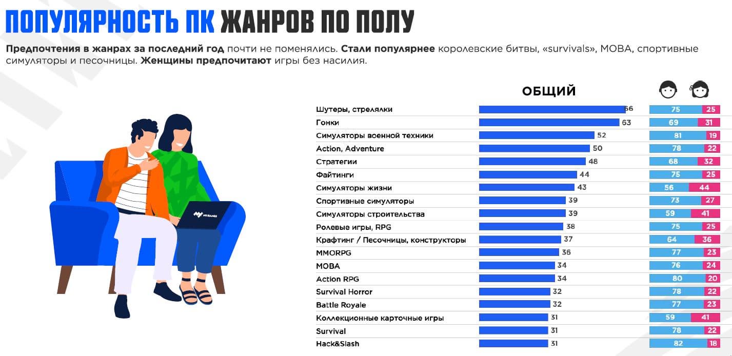 - Большая часть опрошенных предпочитают игры с интересными персонажами