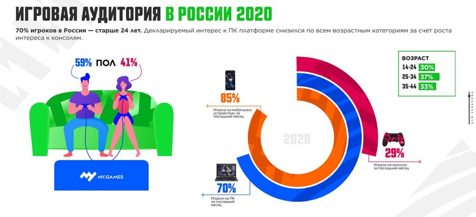 MY.GAMES провела опрос, в котором приняло участие почти две тысячи человек в возрасте от 15 до 44 лет, целью которого было выявление портрета российского геймера.