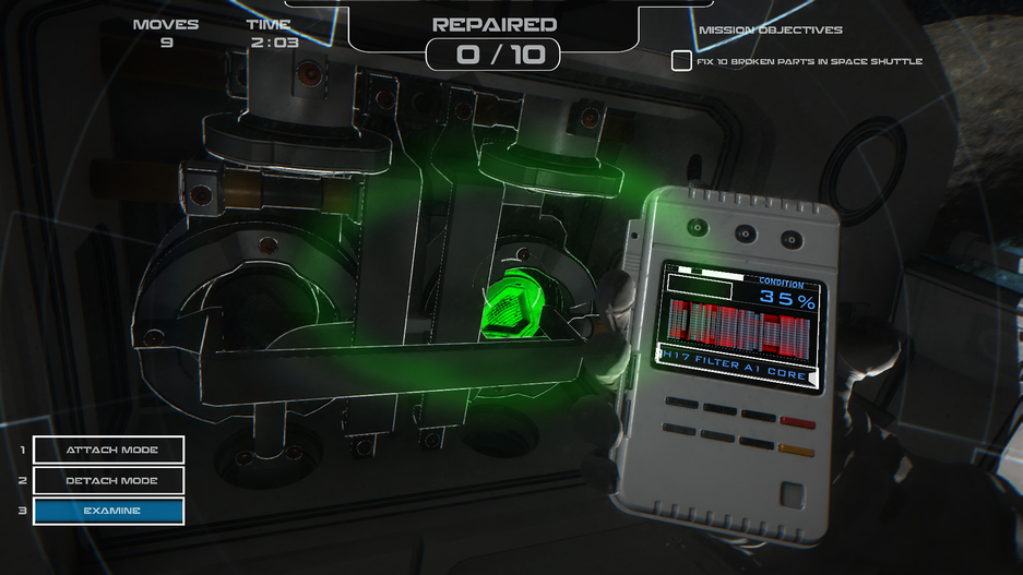 Действие игры происходит на орбитах трёх планет: Марс, Луна и Земля. Также доведётся посетить их поверхность. Основной игровой процесс — ремонт. Предстоит «бродить» в открытом космосе в поисках деталей. Необходимо искать неисправности при помощи сканера и устранять их. На поверхности планет игрок будет управлять марсоходом.