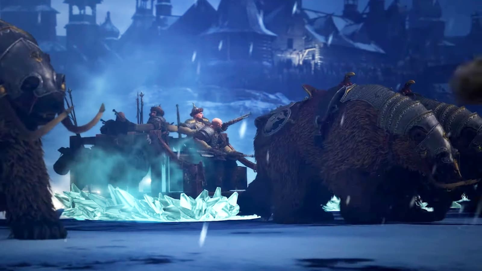Появился новый ролик глобальной стратегии Total War: Warhammer 3 от студии Creative Assembly. В ролике нам демонстрируют боевые сани, которые доступны армии Кислева. Сани запряжены закованными в броню медведями. В санях сидят стрелки. Предусмортрен лёгкий и тяжелый вариант боевых саней.