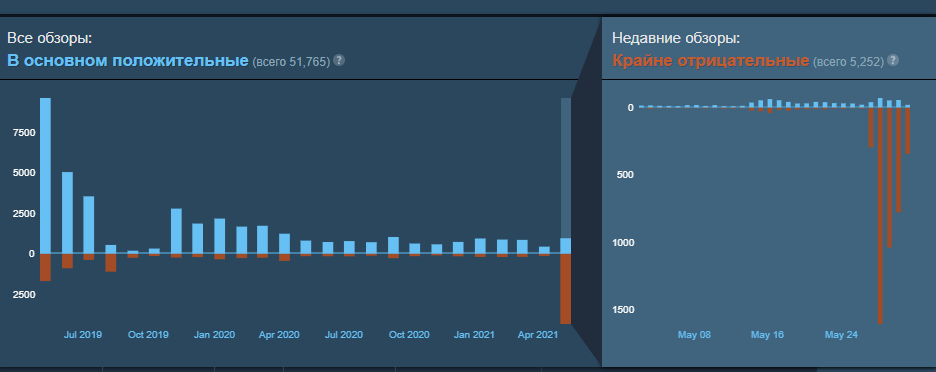 На графике можно увидеть, как резко увеличилось число негативных обзоров.