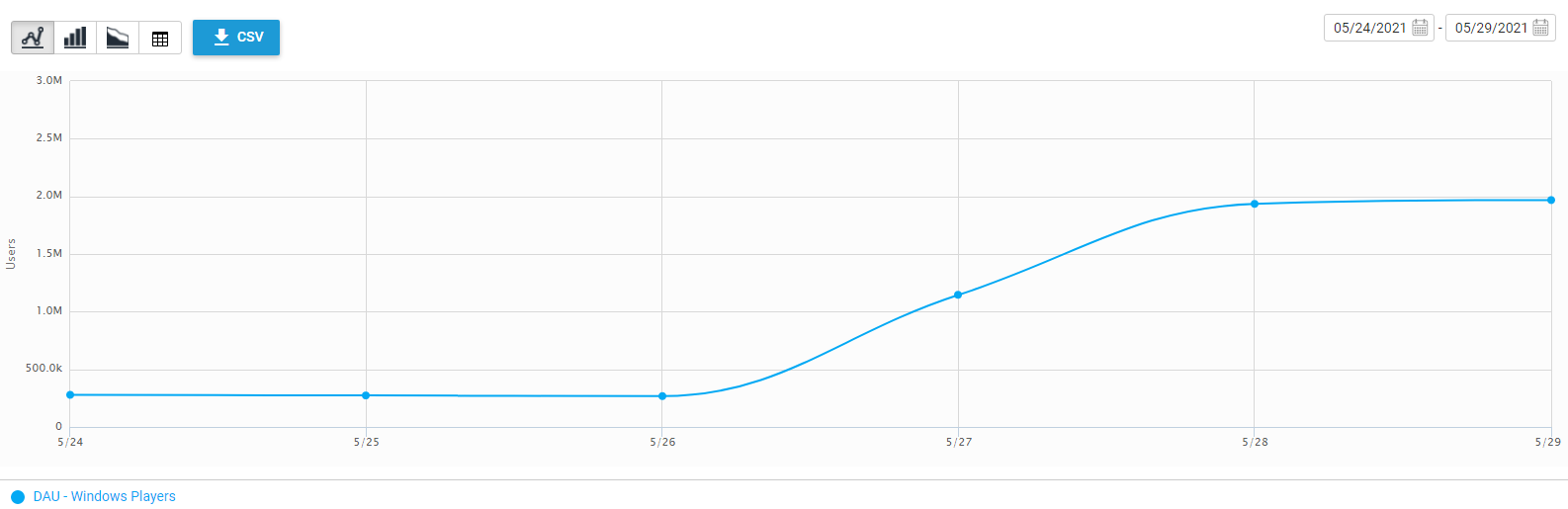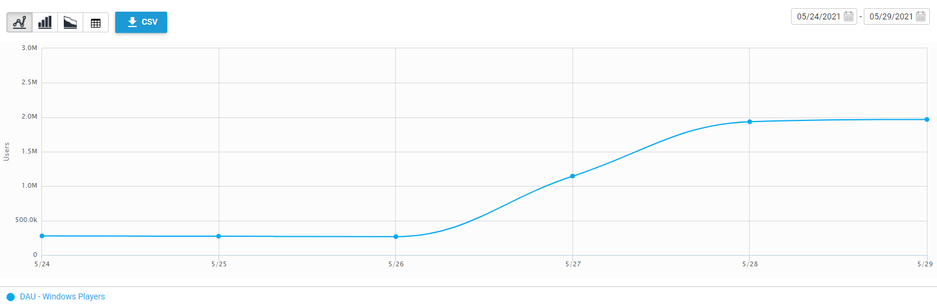 Оказалось, что раздача в Epic Games Store привела к его взрывному росту — до 2 миллионов за сутки (обычно значение показателя для ПК находилось в районе 350 тысяч человек в день)