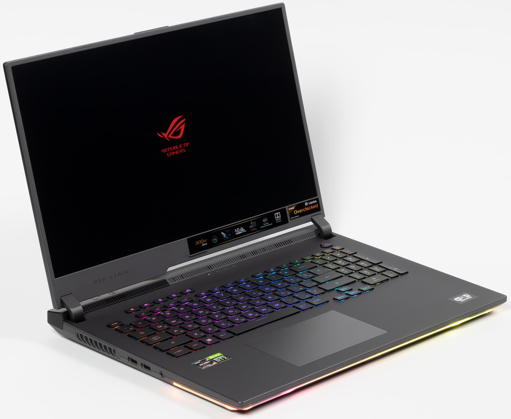 Ноутбук Asus ROG Strix G17 G713Q выпускается в трех модификациях, различающихся моделями процессора AMD Ryzen 9 серии 5000 и дискретной графики Nvidia. Мы расскажем о машине с наиболее серьезной аппаратной начинкой: топовый AMD Ryzen 9 5900HX и видеокарта Nvidia GeForce RTX 3070, которая на сегодняшний уступает лишь аналогу с индексом 3080.