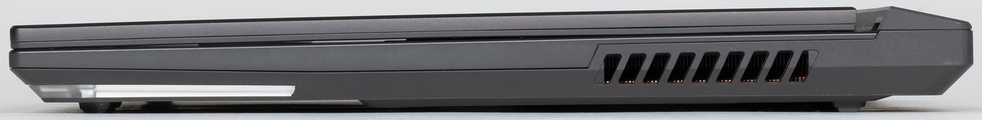 Справа на боковой поверхности нет никаких разъемов; имеются лишь решетка выходного отверстия системы охлаждения и световод.