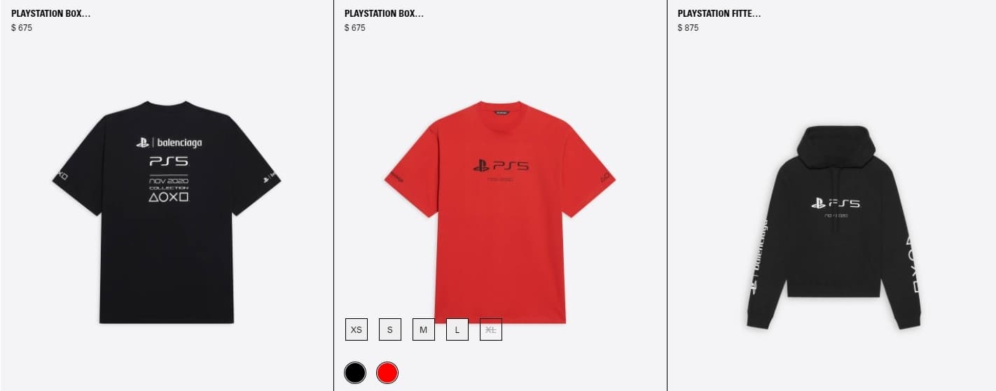 Производитель подготовил линейку одежды с логотипом PlayStation. Интересно, что обычная футболка стоит почти на 200 долларов дороже PlayStation 5. Balenciaga подготовила две футболки и толстовку с капюшоном: