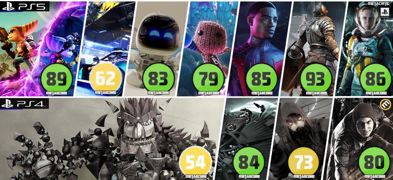 С момента запуска PS5 появилось несколько сильных игр. Портал PushSquare обратил внимание на оценки игр, появлявшихся на старте, новой и предыдущей консоли PlayStation на Metacritic.